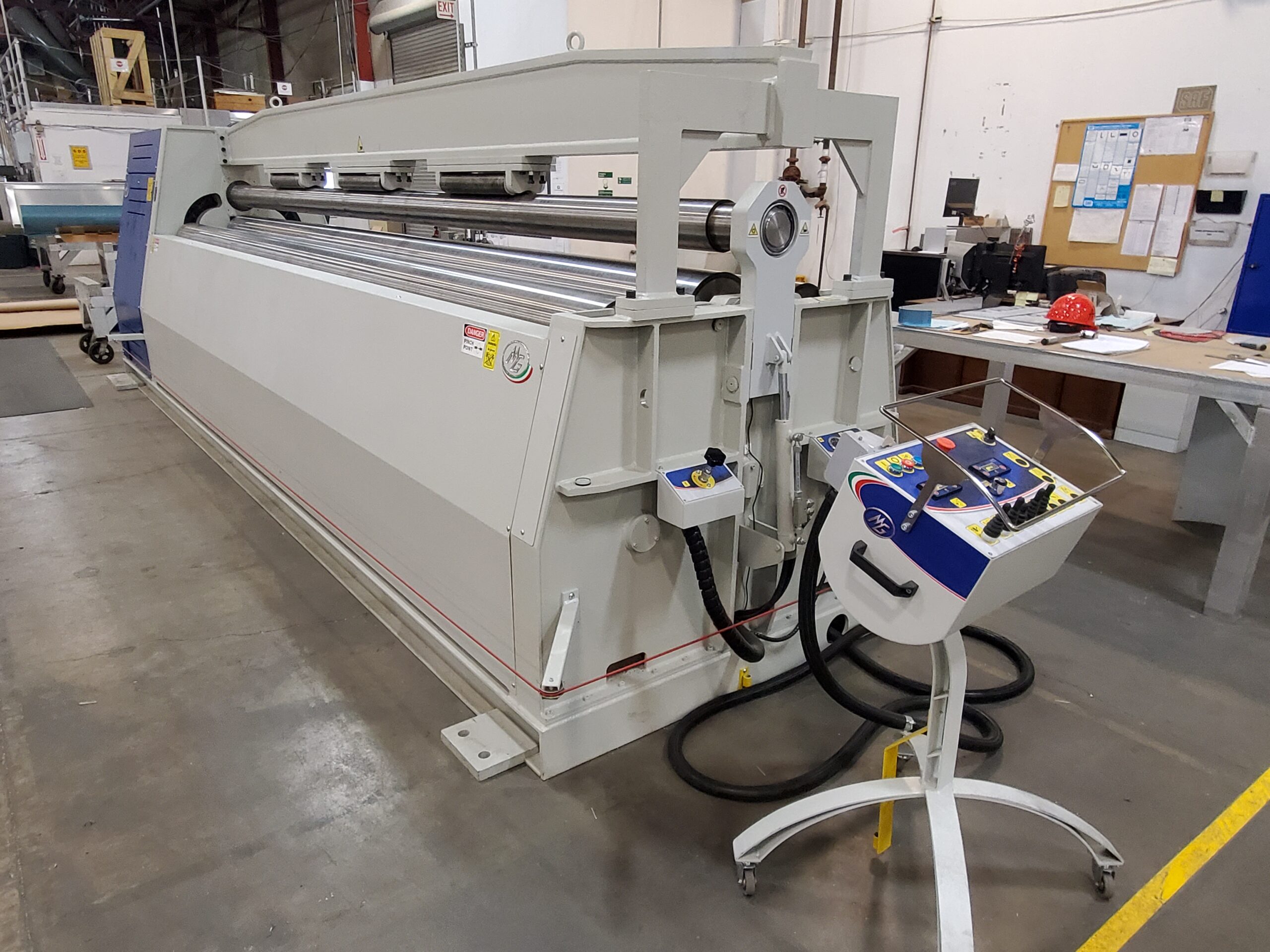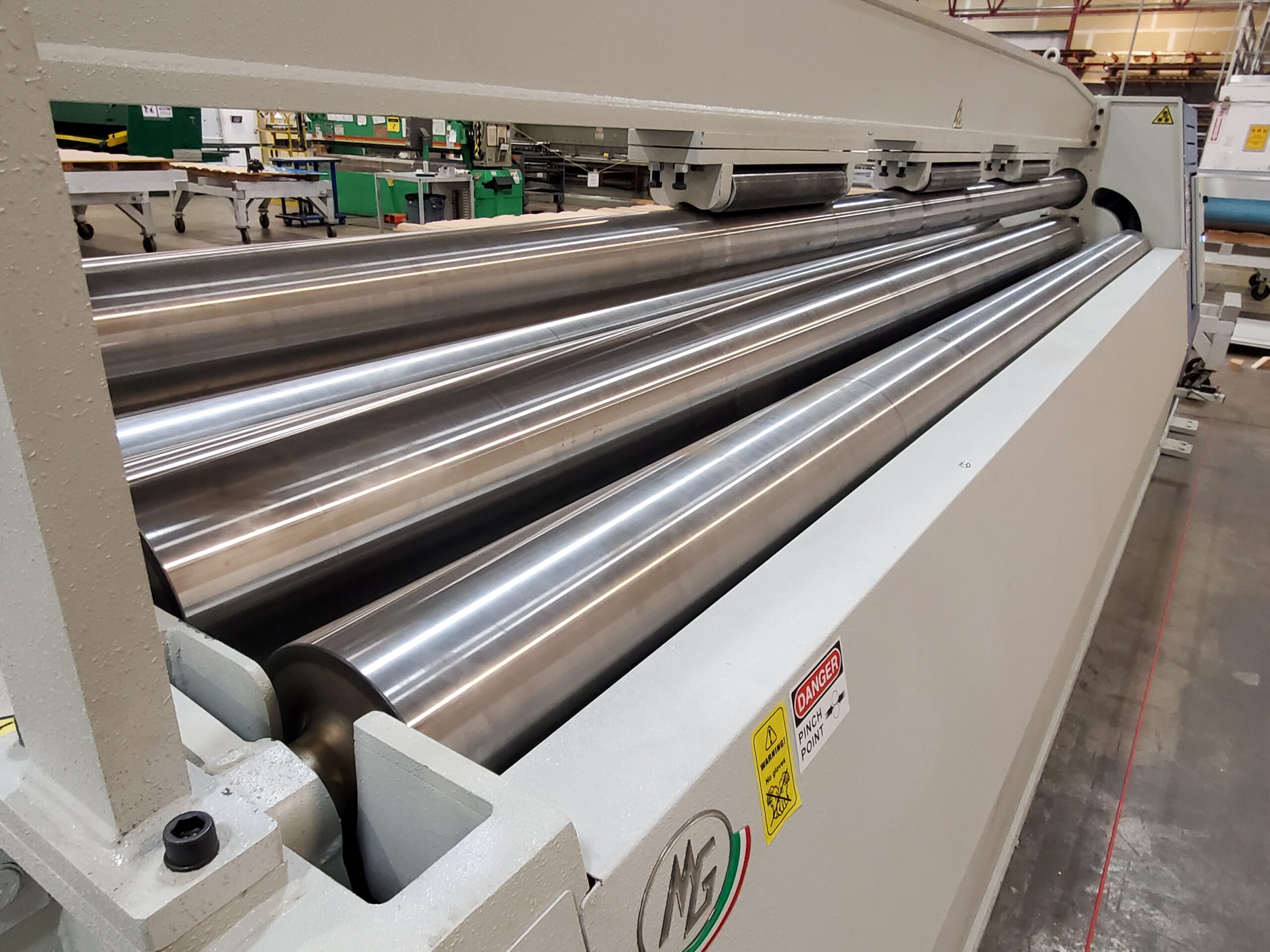The double pinch hydraulic 4-roll 16′ plate bending machine – MG Model M 5006 B-RR – allows SAF to create longer and taller column covers up to 16 feet in length and in a range of circumferences. The MG roller offers easy operation due to its ability to pinch the plate between two central rolls, prebending the leading edge, and then rolling the metal material along with the trailing edge all in one direction and in one pass.