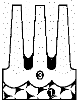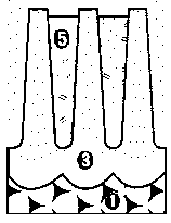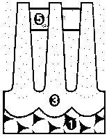 | 6.Electrolytic colouring combined with organic dyeing | ![]() | -Pretreatment-Anodizing (no special alloy)-Dyeing with higly-fast organic or inorganic dyes-Sealing* (Nt) | One colouring of matter at base of pores, the other incorporated in the coating; min. anodic coat thickness 20 pm | Virtually unlimited, muted shades, no white | Metallic character and surface appearance of the aluminum retained | Outstanding, no chalking | Hardly detectableA special protective treatment after sealing the dyeing prevents any loss of the coat thickness due to erosion | As above | Like normal electrolytic dyeings; no flakingThese coats are considerably harder than surface coatings | Impossible without dismantling (but alien retouching possible on the building) | As above |