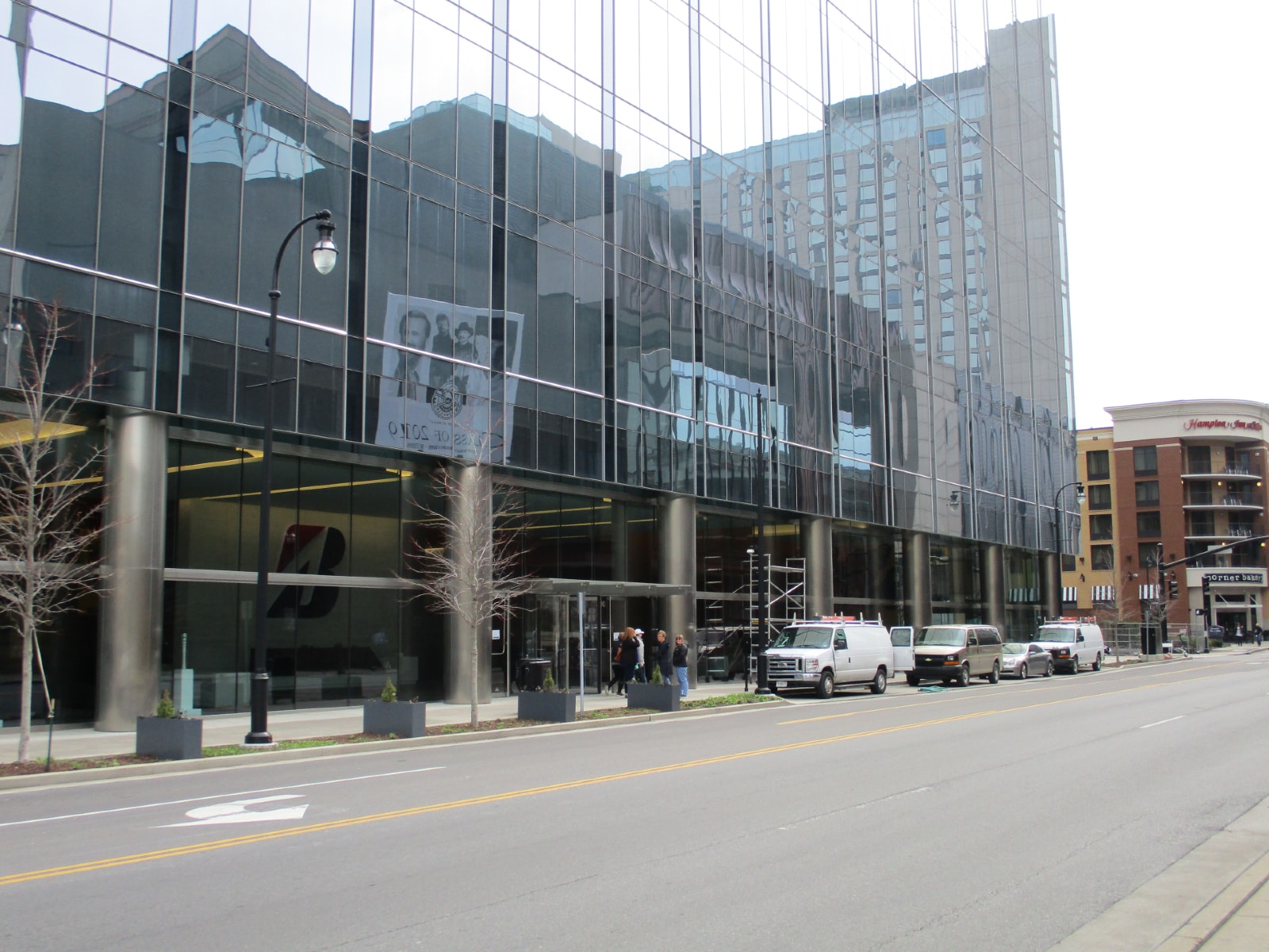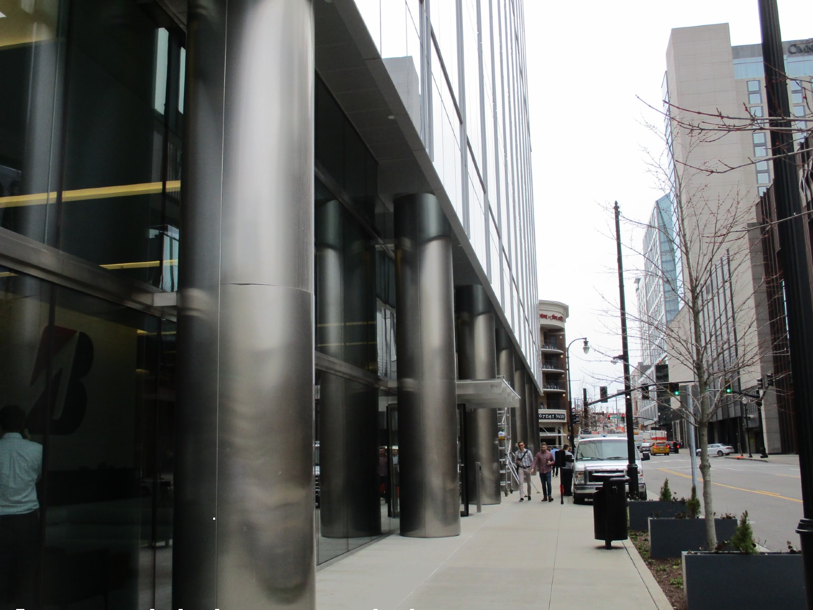 Bridgestone Tower is a 30-story, 514,000-square-foot building located on 4th Avenue South. The street features a slight downward grade, requiring a custom approach when fabricating the column covers to accommodate this vertical change.