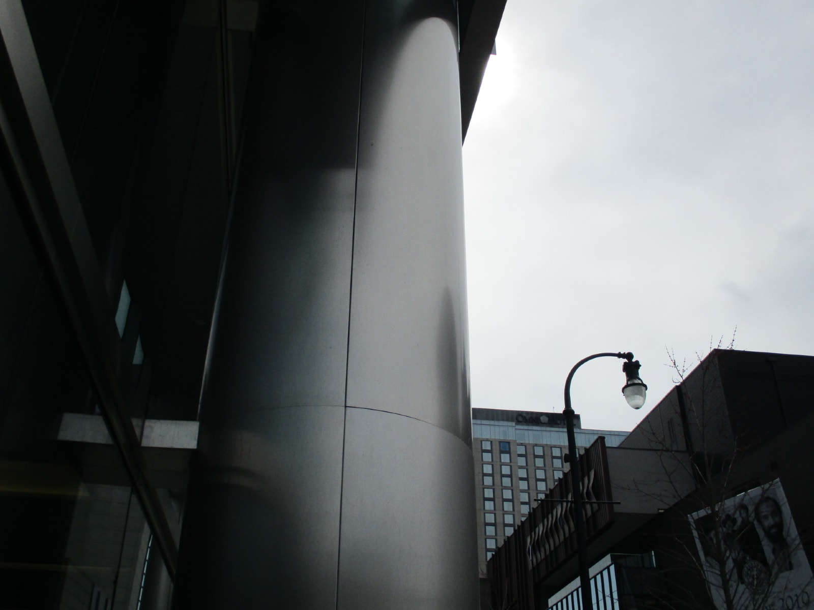The slight grade of the street required SAF to manufacture the column covers to different heights, ranging from 4’ to 3’ 4”. The width of the cylindrical column covers needed to vary as well to include seven different diameters.
