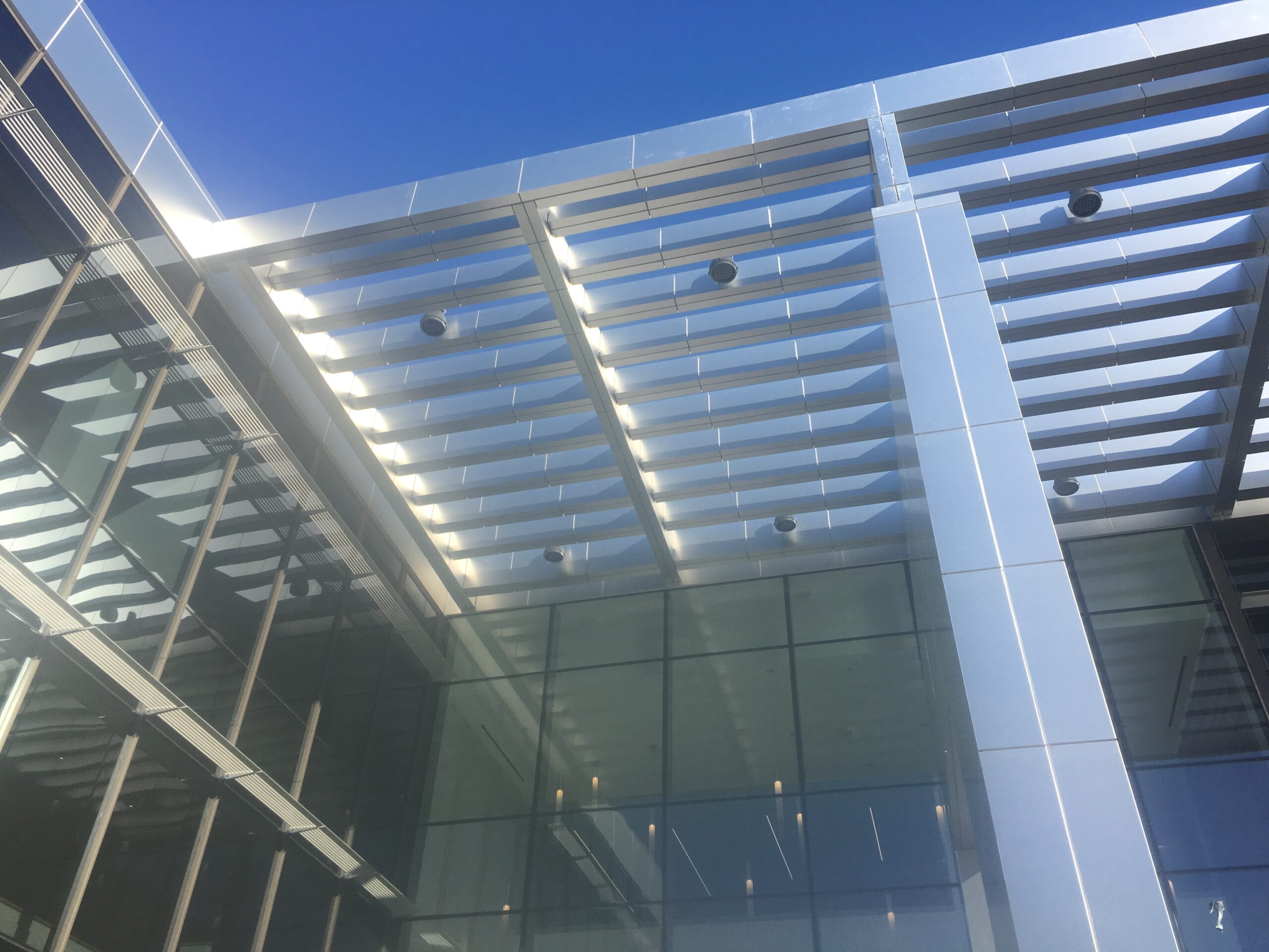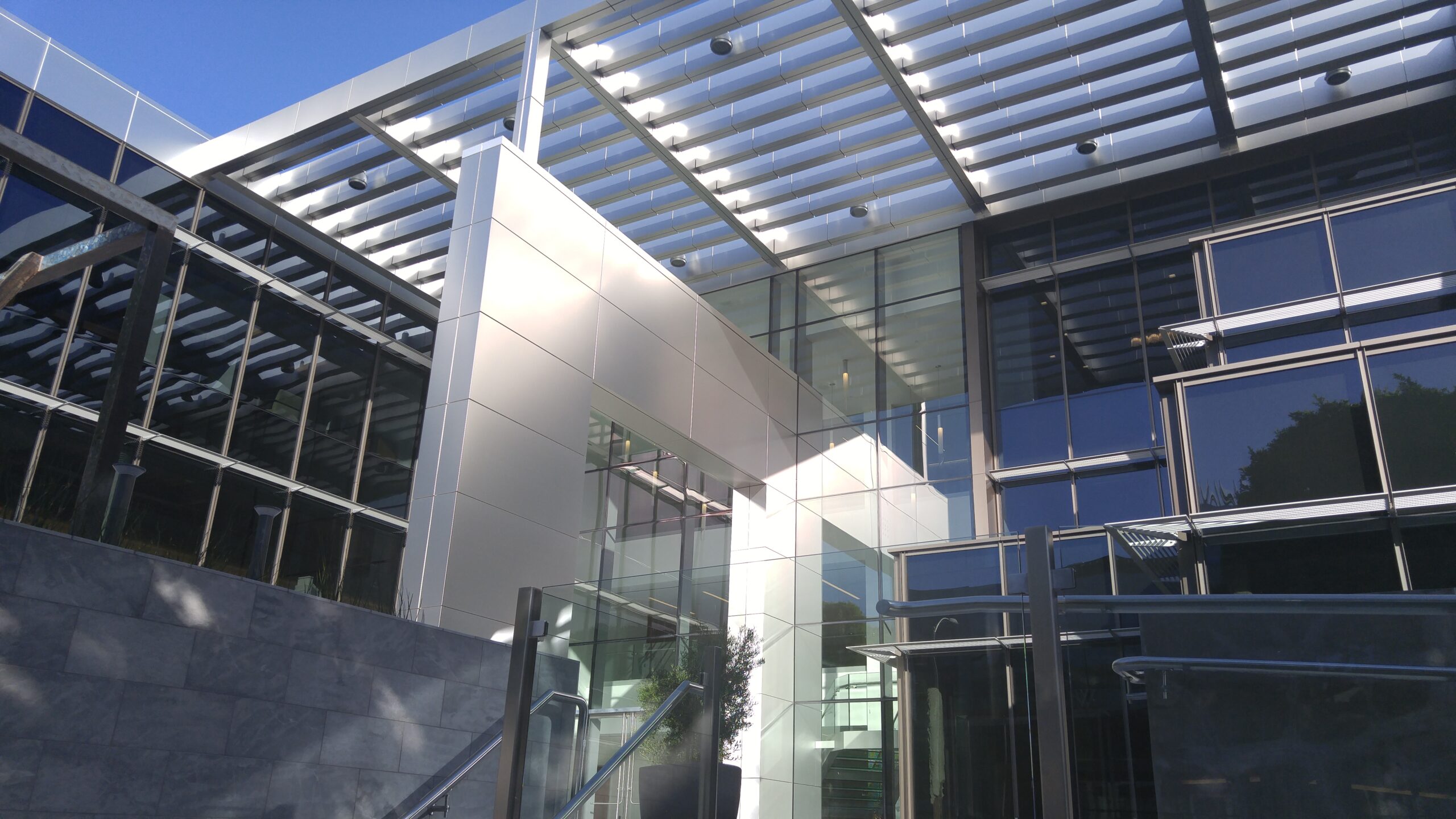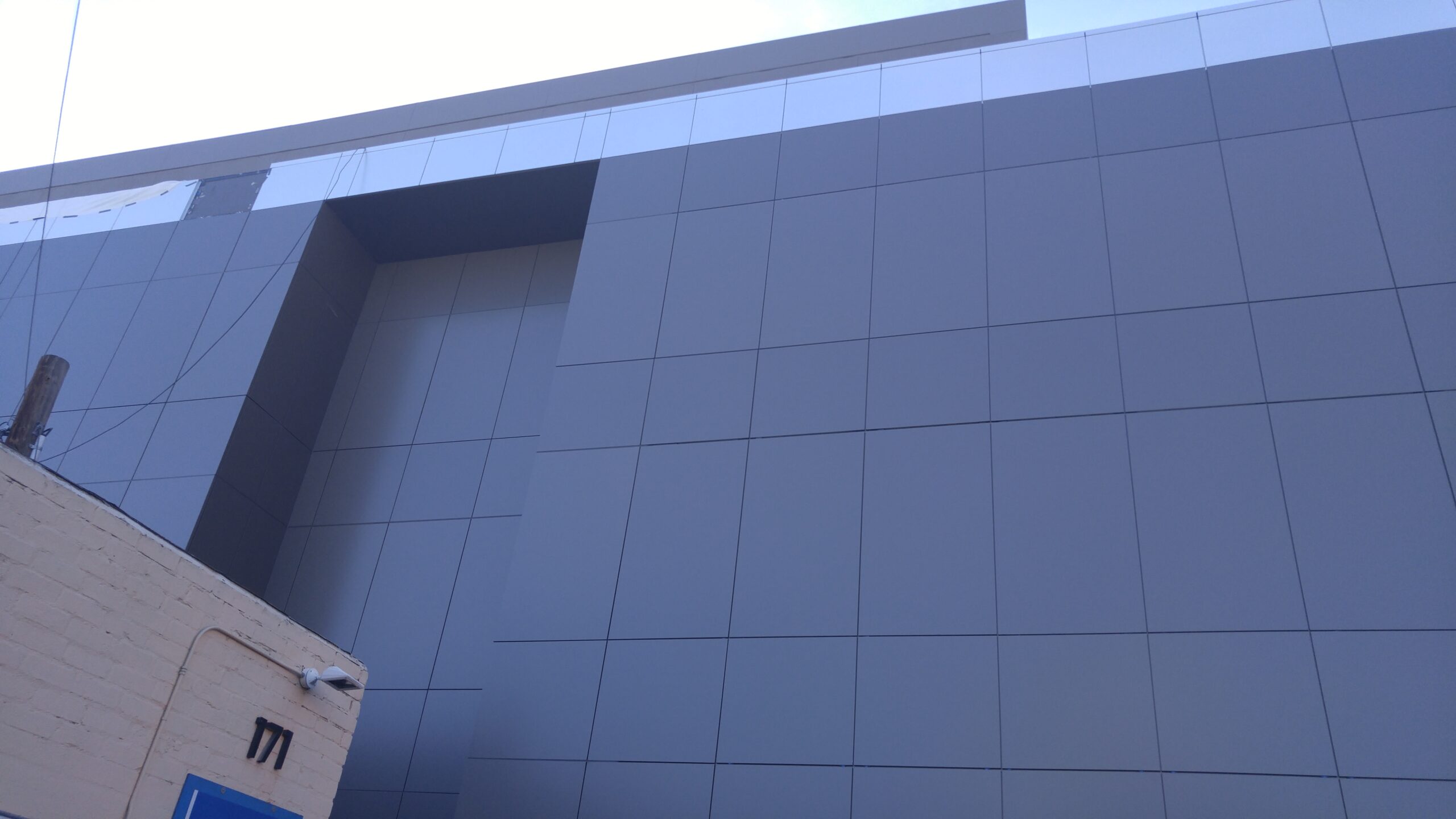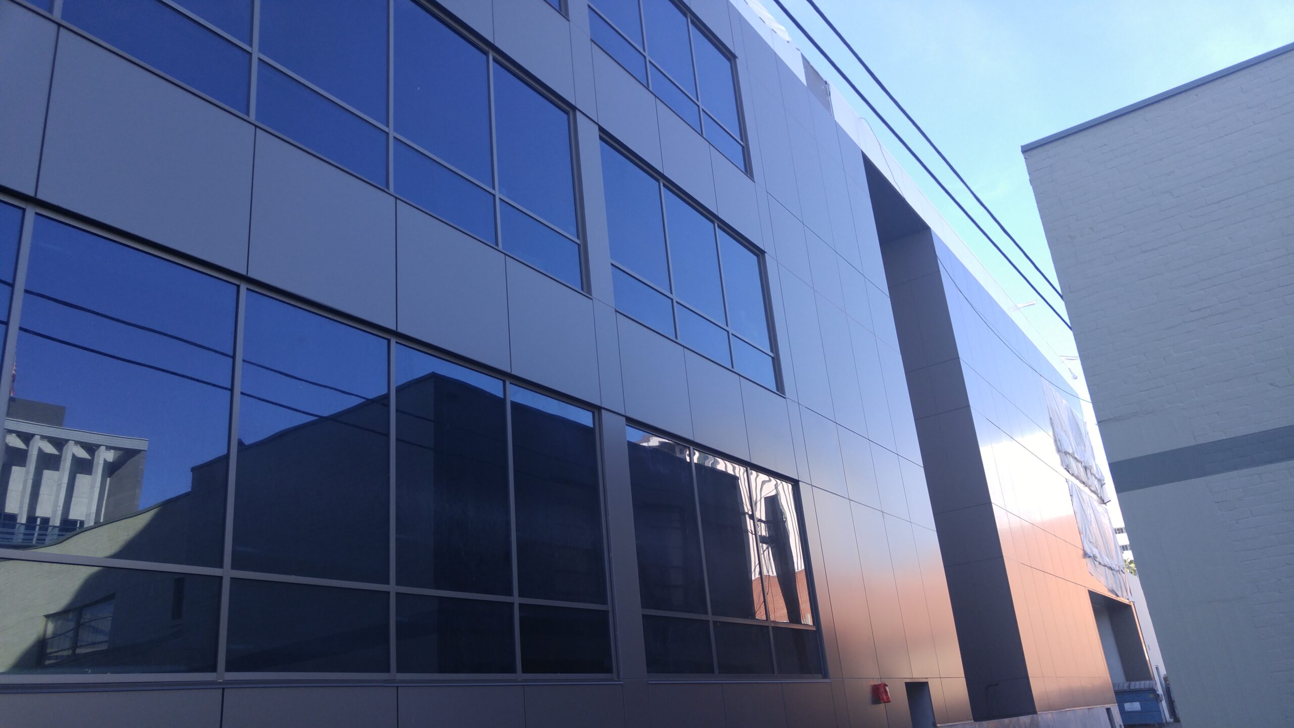 SAF supplied our C4000 rain screen panels fabricated with two different finishes: a natural brushed aluminum composite material and a fluorocarbon coated metallic panel, both supplied by Alpolic. The sleek look of our rain screen helps reposition this three story commercial office building with a new ACM façade cladding system.