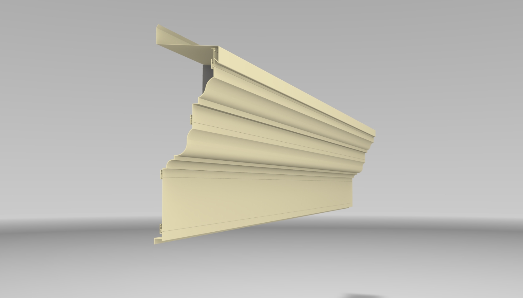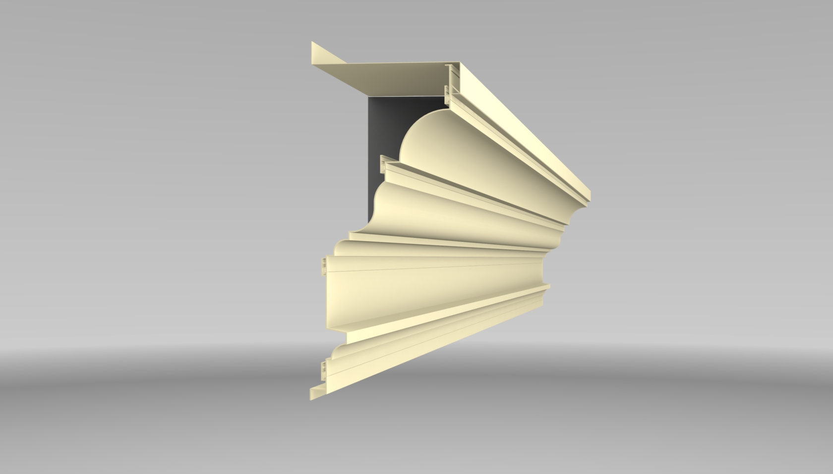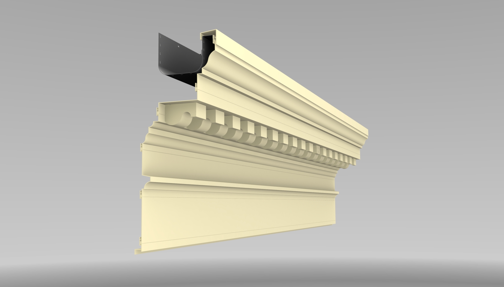 Designer Series Extruded Cornice Mouldings are uniquely designed to interlock with a water resistant and securely locked seam.  In addition, we designed our mouldings with an overlapped “shingle effect” seam to deflect wind driven rain.