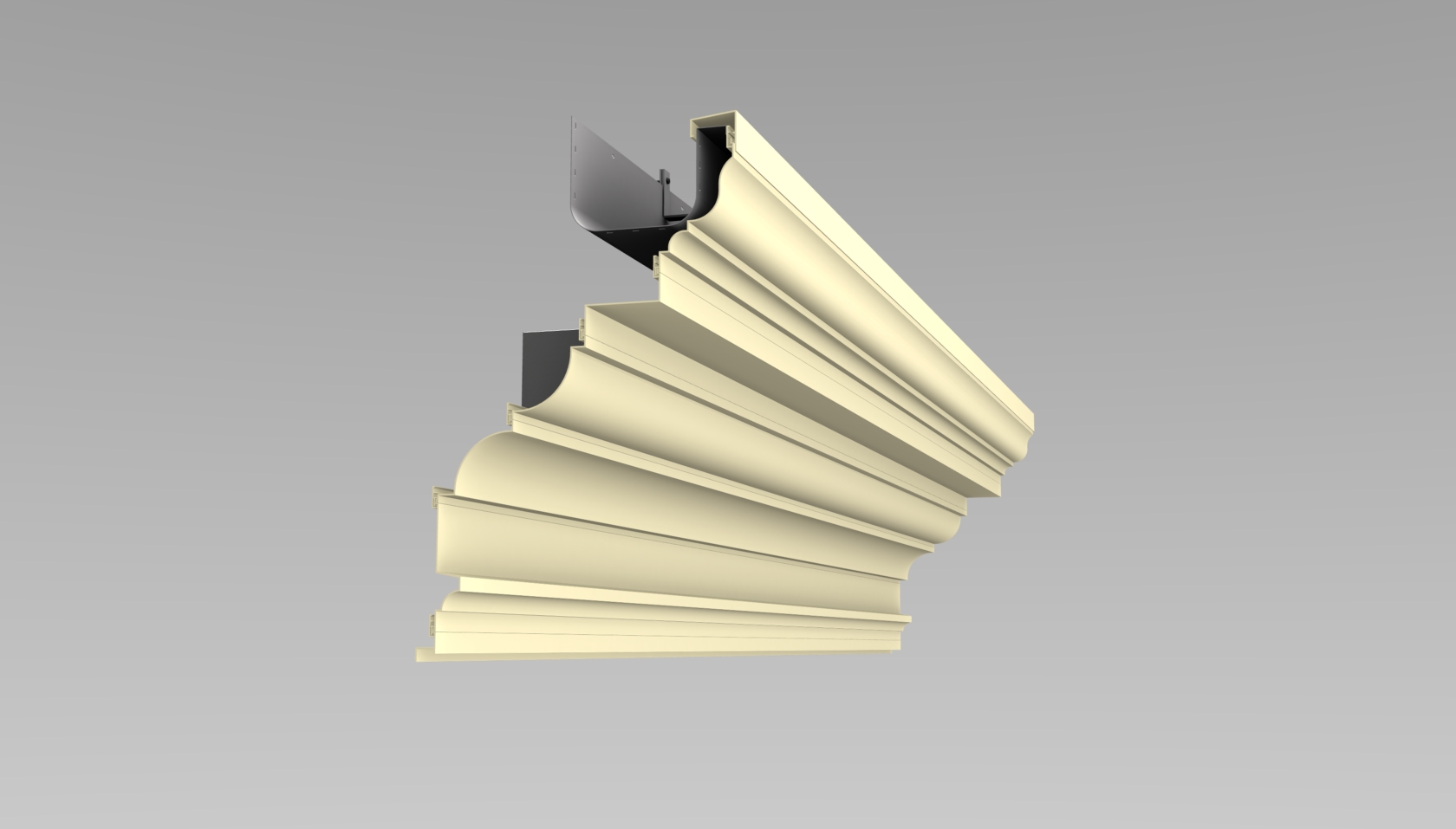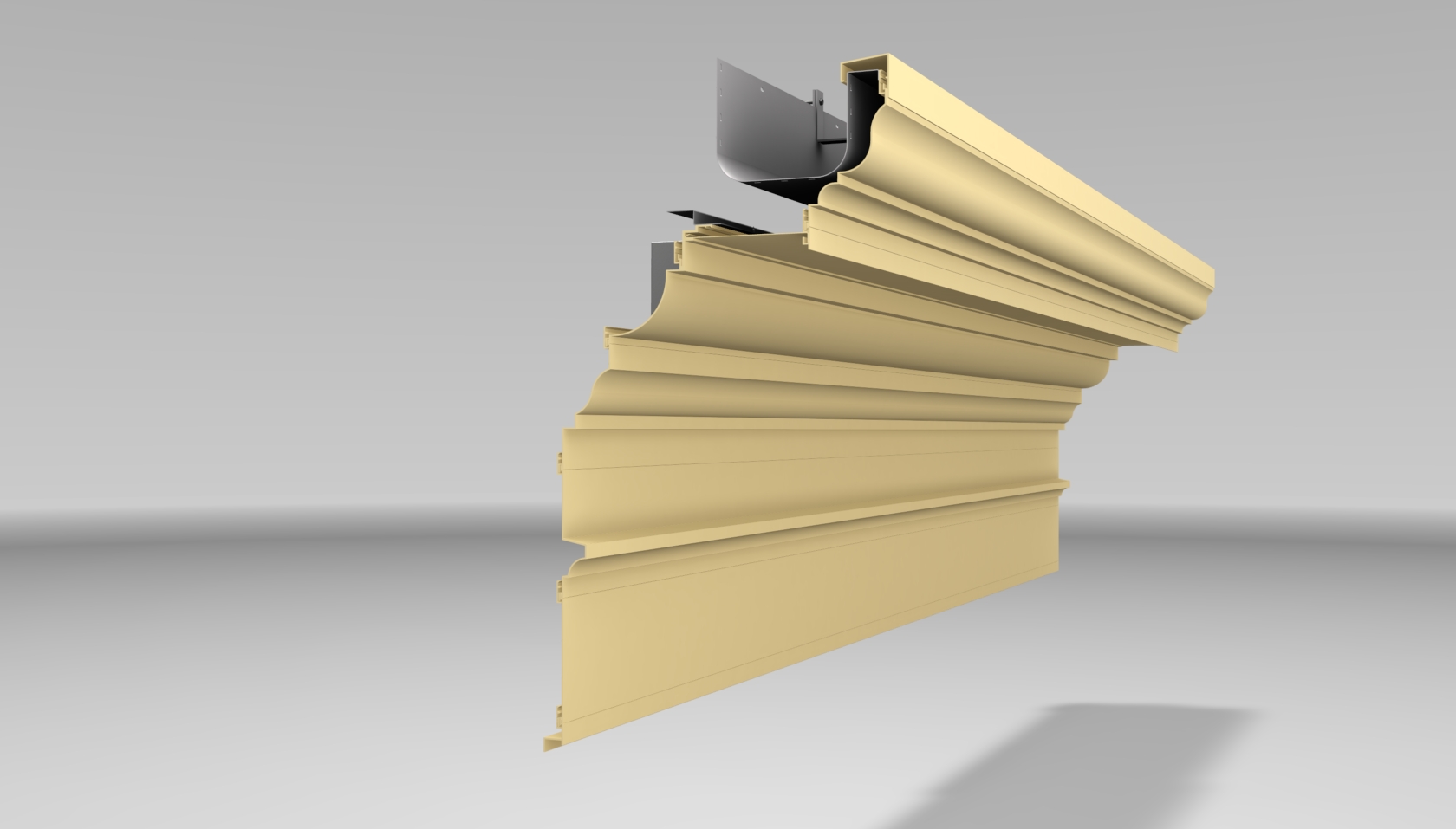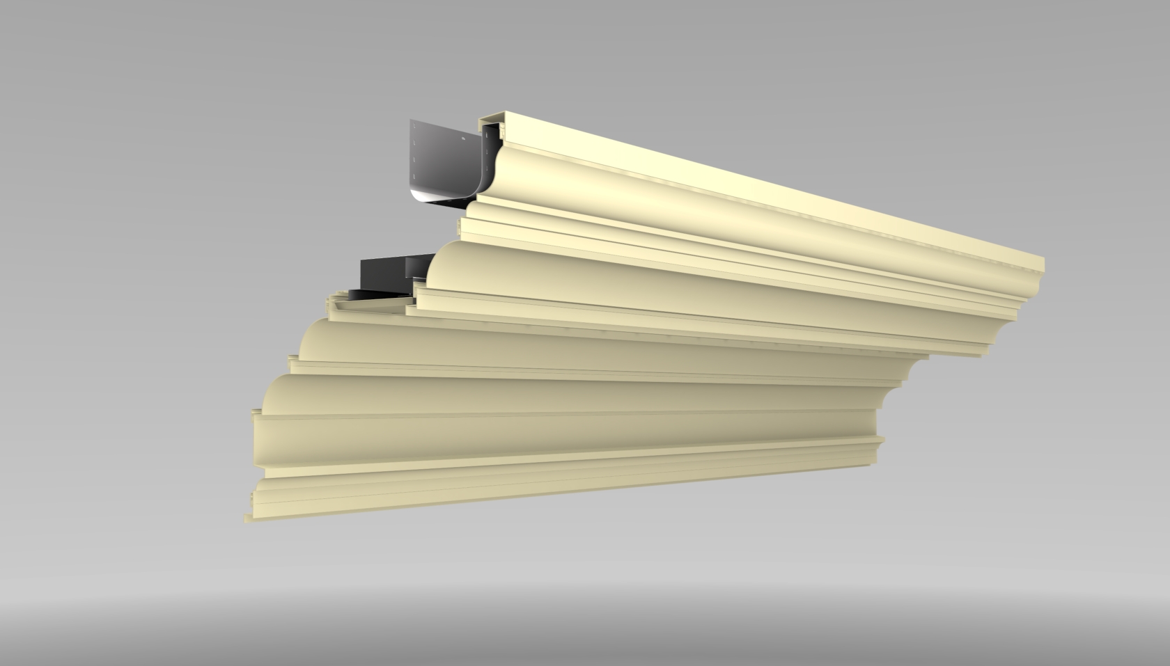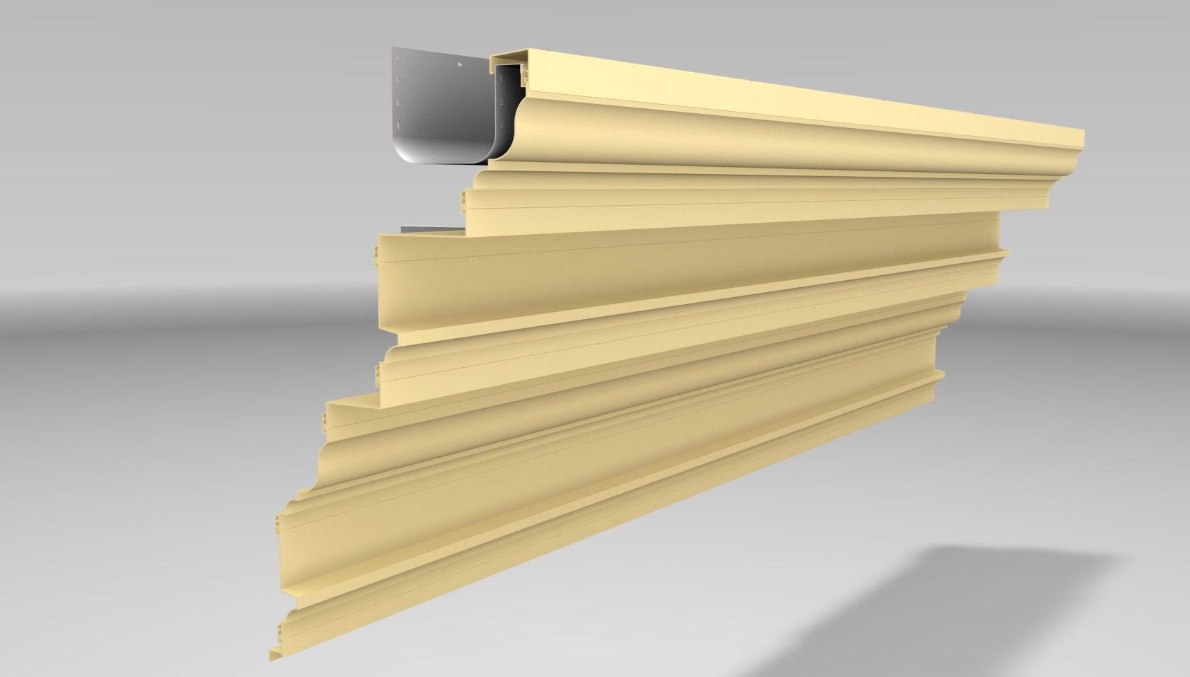 Designer Series Extruded Cornice Mouldings are uniquely designed to interlock with a water resistant and securely locked seam.  In addition, we designed our mouldings with an overlapped “shingle effect” seam to deflect wind driven rain.