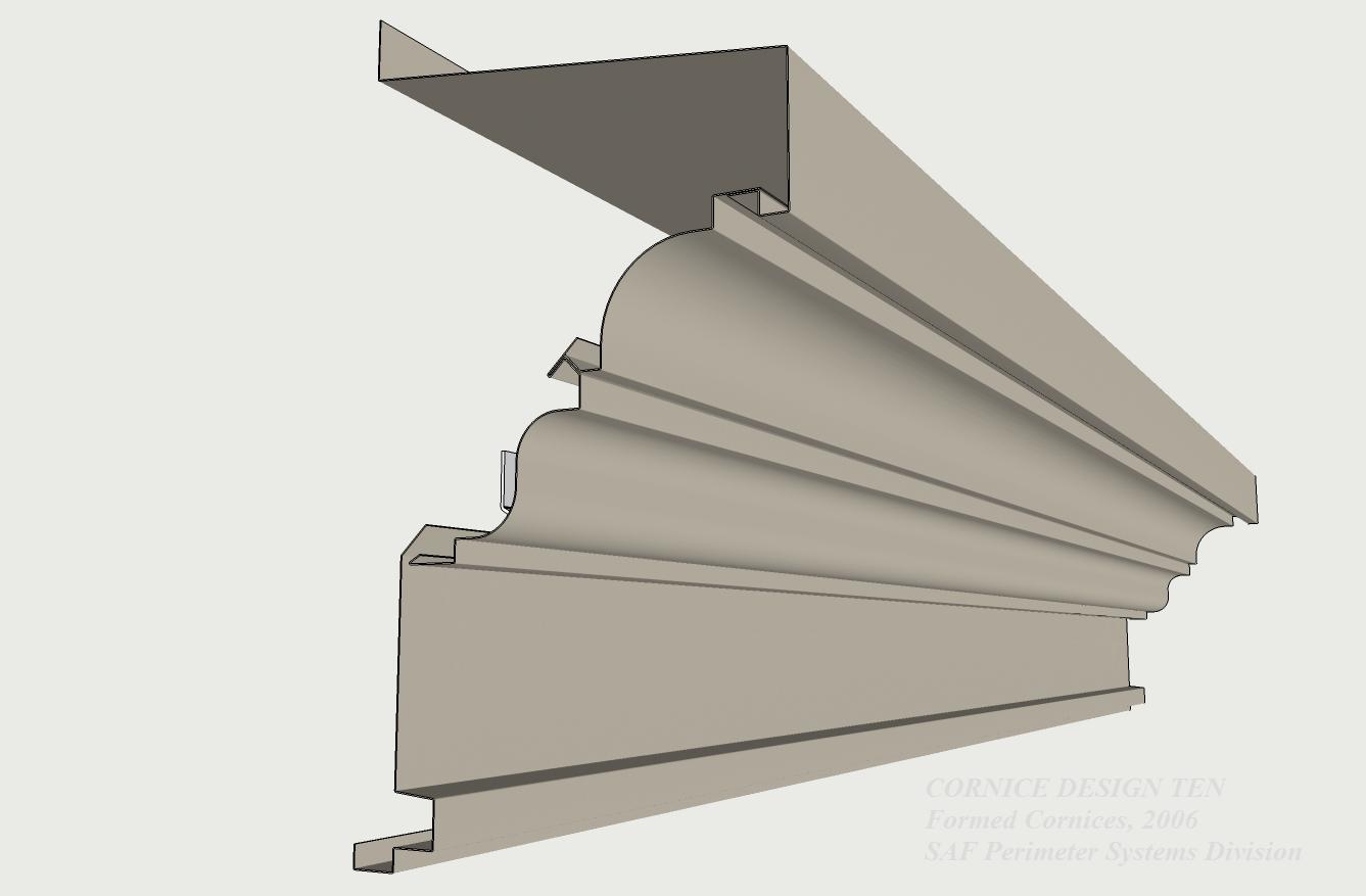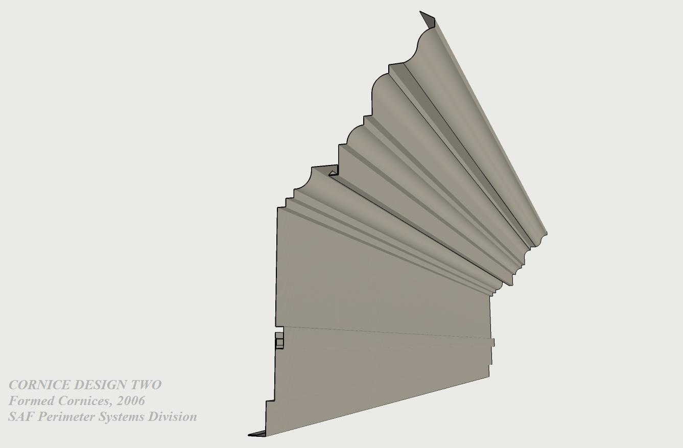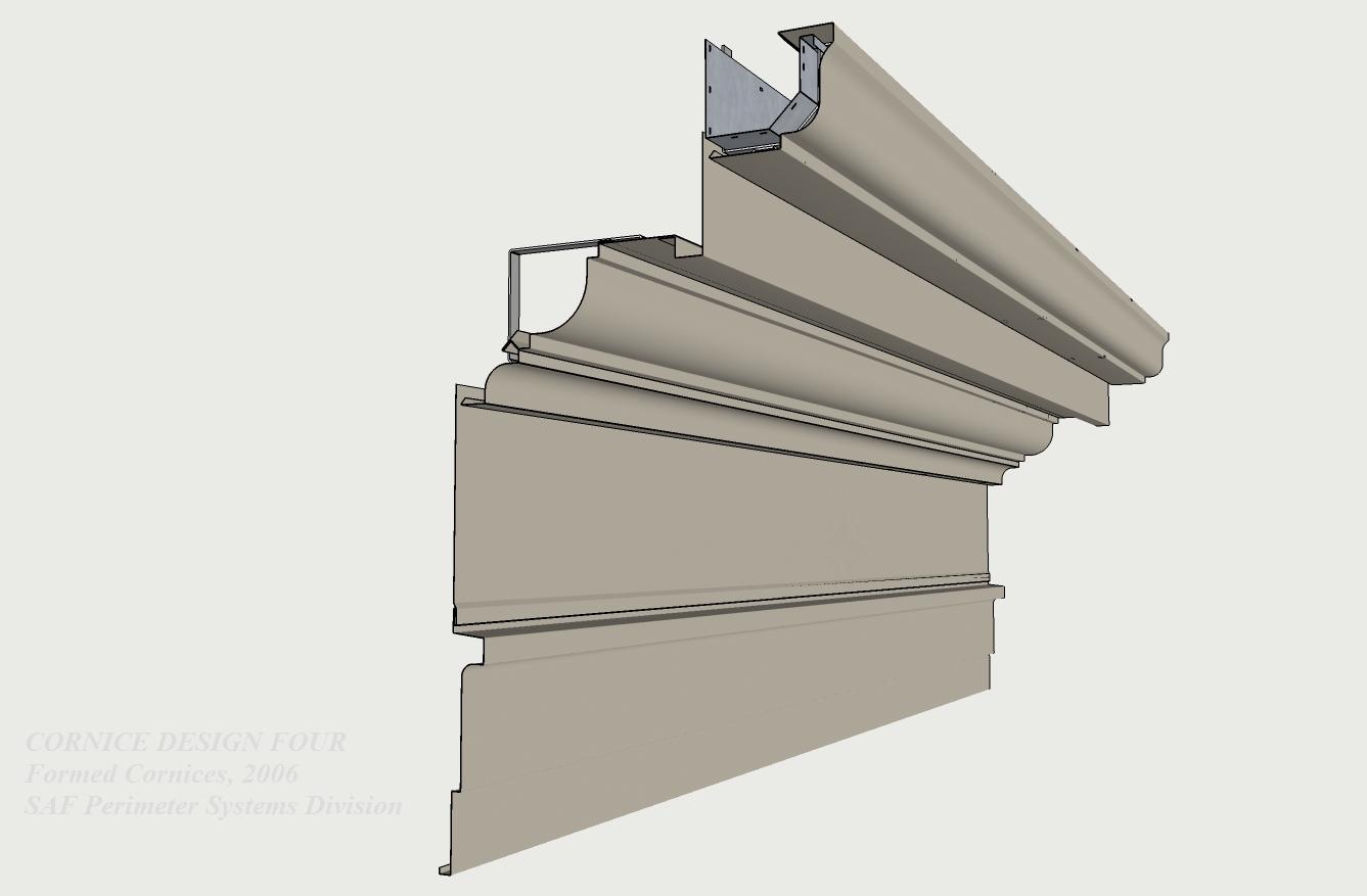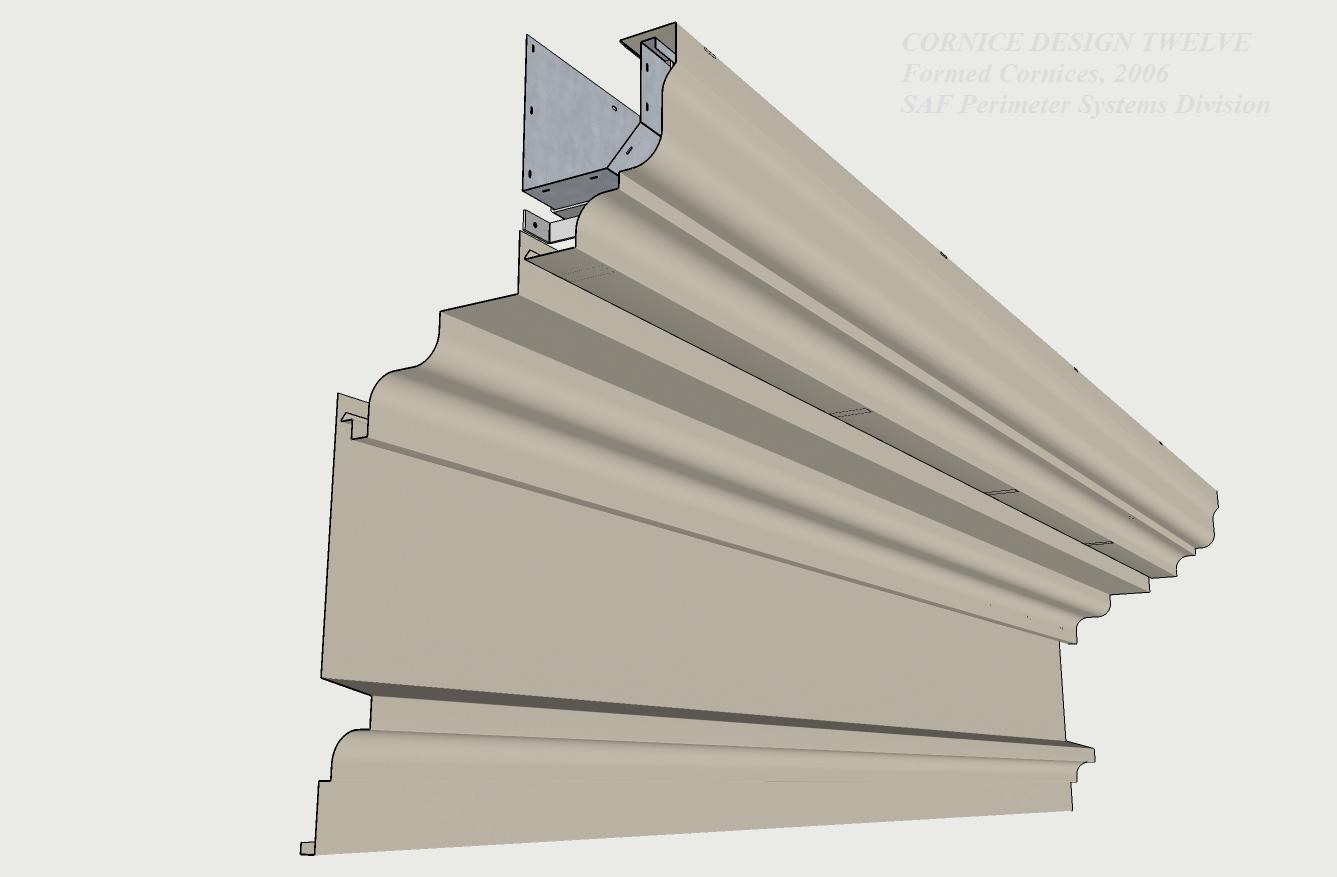 | Using profiles from SAF Cornice Mouldings, Versa Cornice is a product developed to convert a dull parapet coping into a visually exciting sculptured roof edge. Designed for both retrofit and new construction, Versa-Cornice attachment brackets fit all SAF Perimeter Systems coping caps and most other parapet caps or applications. | ||||